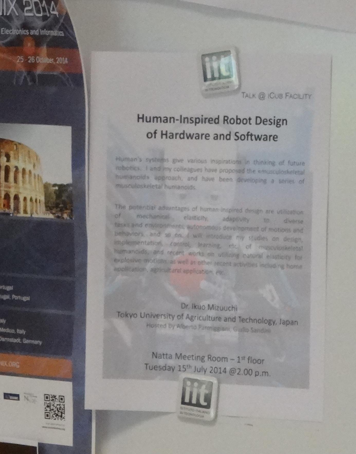 - 水内がROBOMECH2014の発表に関し、日本機械学会ロボティクスメカトロニクス部門 ベストプレゼンテーション表彰を受賞